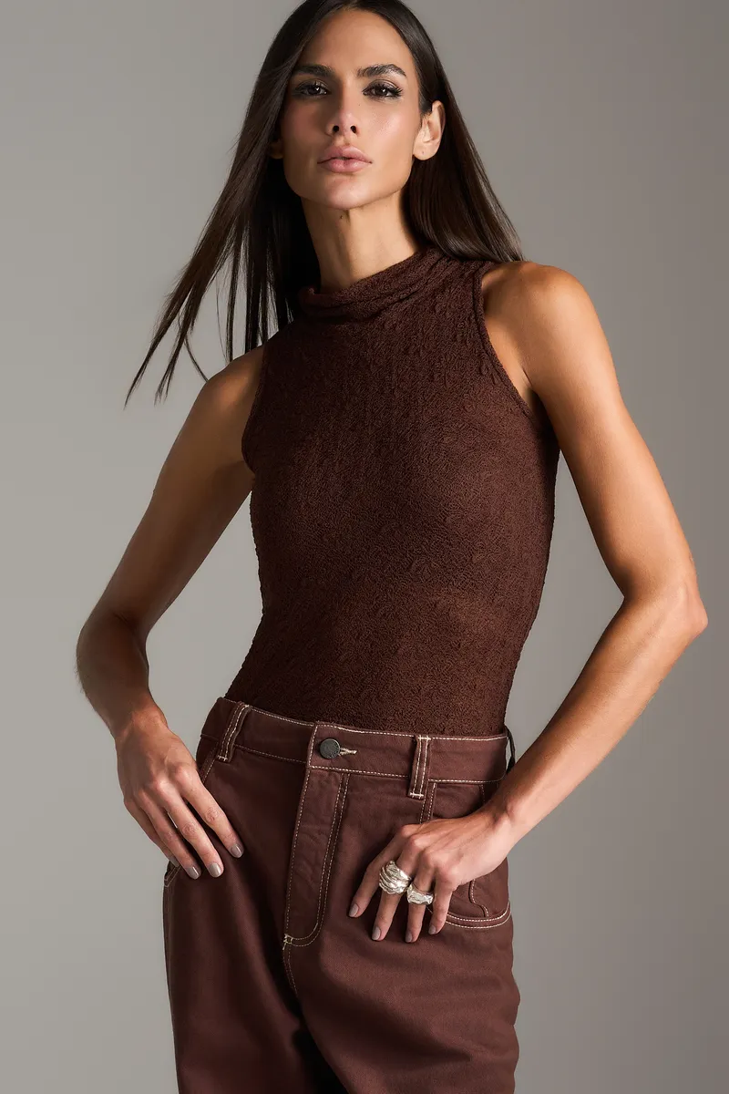 Blusa Trama Cava Americana - Choco