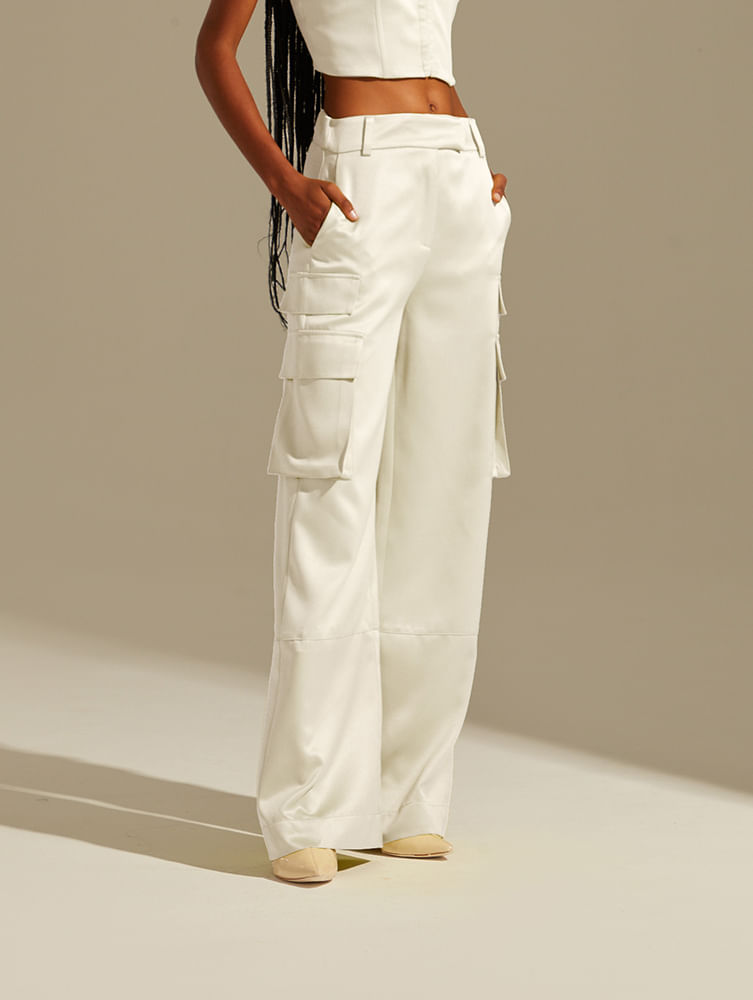 Calça Alfaiataria Cetim - Off-White