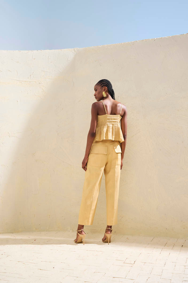 Calça Pespontos e Cinto - Bege