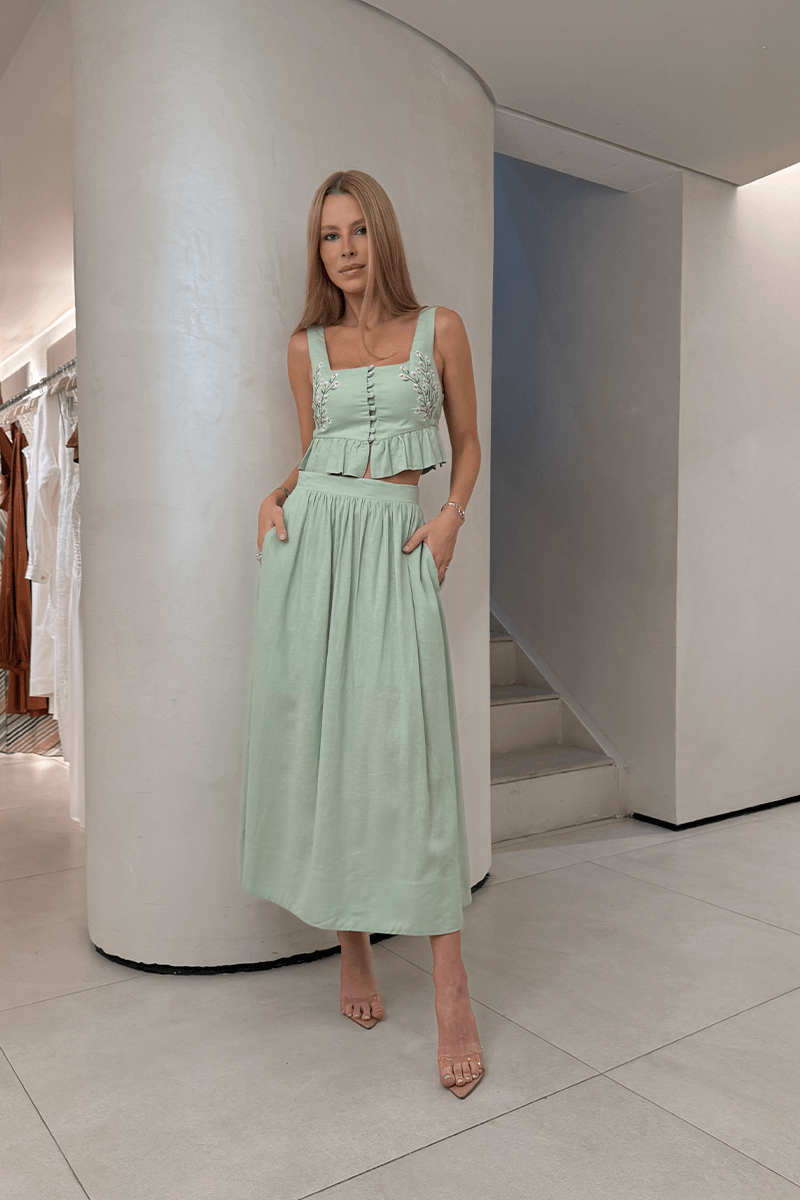 VERÃO 26ConjuntosConjunto Bord Floral Exclusivo - Verde Fresh