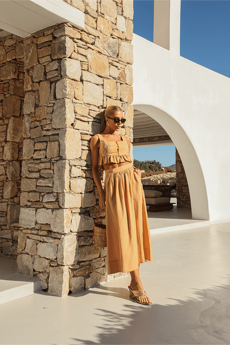 VERÃO 26ConjuntosConjunto Bord Floral Exclusivo - Mostarda
