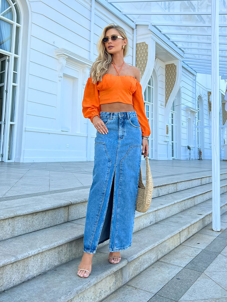 OutletSummer SaleSpecial GiftBlusasBlusasCropped Ombro A Ombro - Laranja