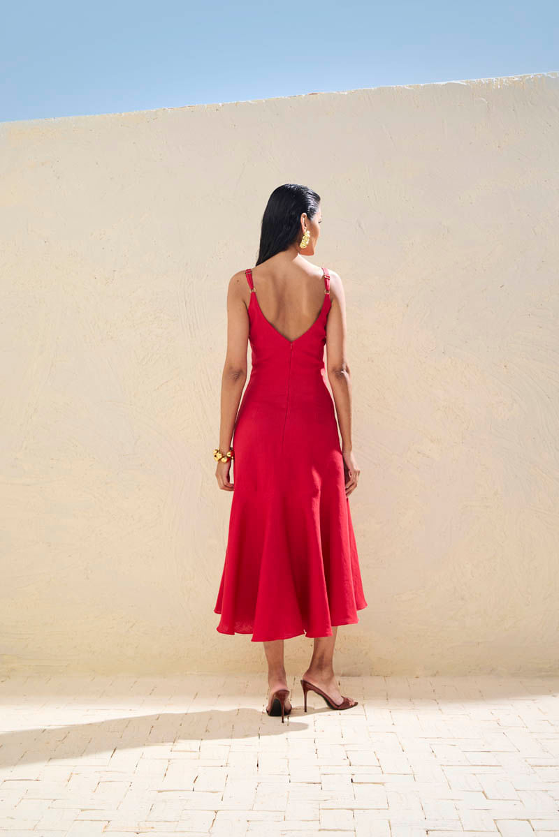 VERÃO 26VestidosVestido 100% Linho - Vermelho