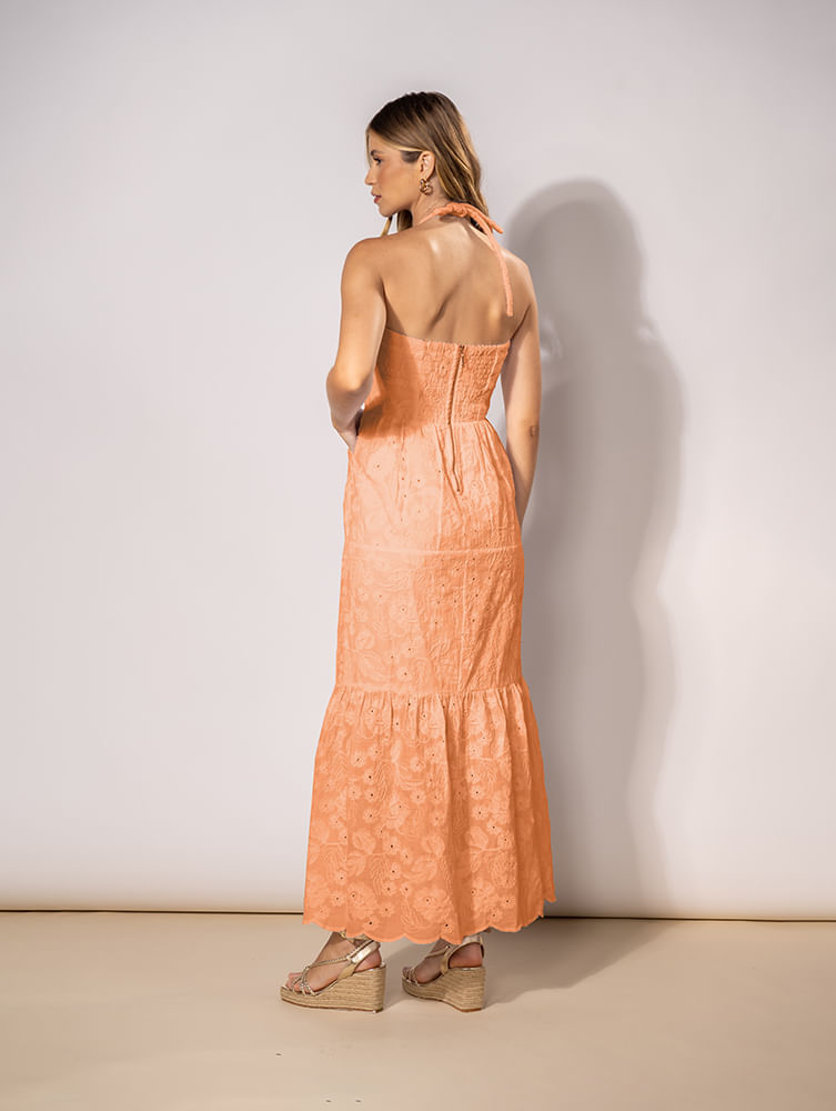 Vestido Algodão Bordado - Coral