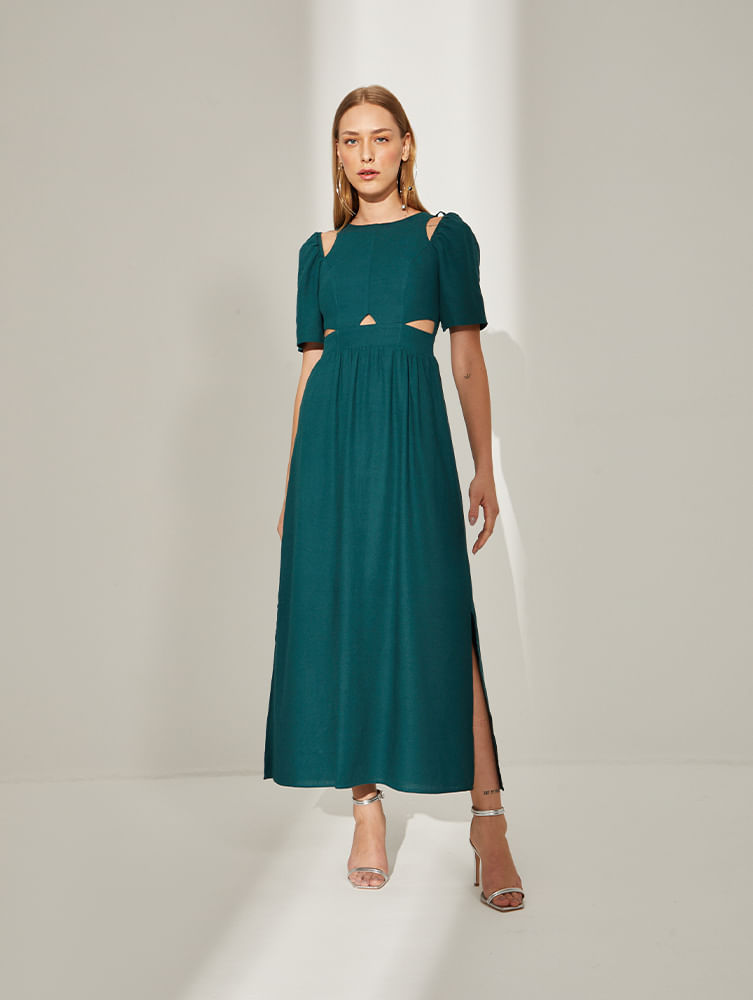 OutletVestidosVestido Linho Recortes - Verde Forest
