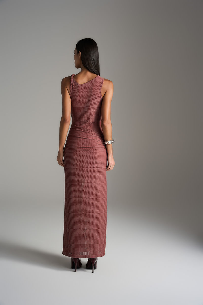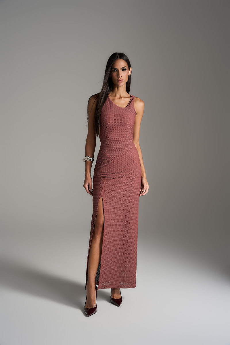 Vestido Longo Fenda - Cognac