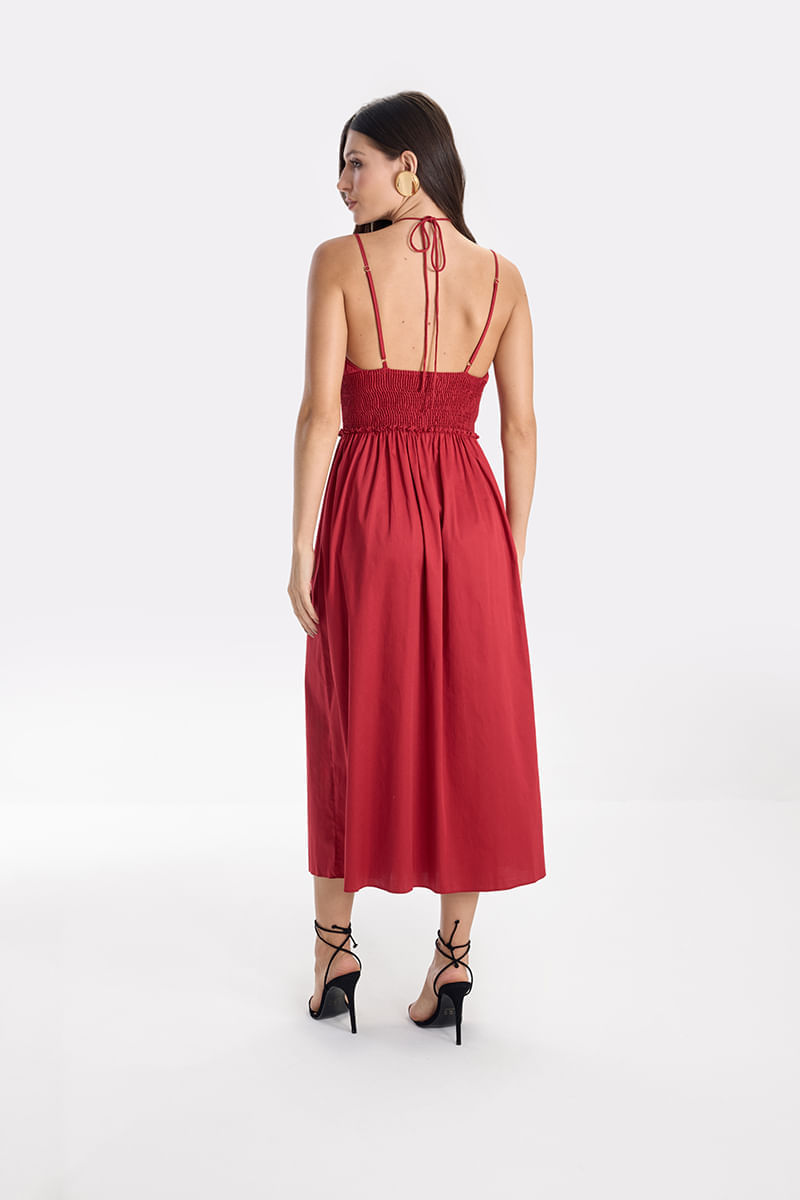 Vestido Satin Alças Passantes - Vermelho Pimenta